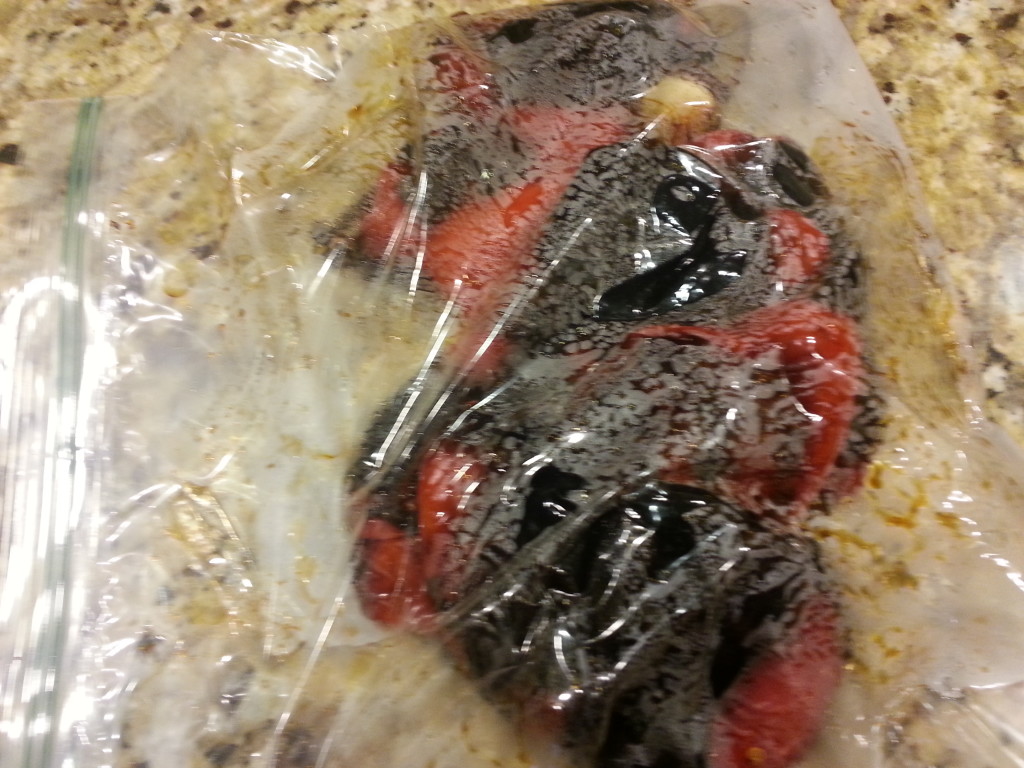 Previous Image Next Image After you blacken the peppers place them in a bag to steam off the skins. When they are cool, they are easy to peel. After you blacken the peppers place them in a bag to steam off the skins. When they are cool, they are easy to peel.