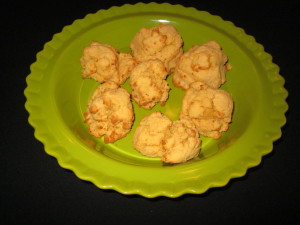 Preheat oven to 375.  Blend all ingredients, mixing well. Line a baking pan with parchment and drop by spoonful. Or grease pan with coconut oil with a paper towel.Bake for 15 minutes until lightly brown.