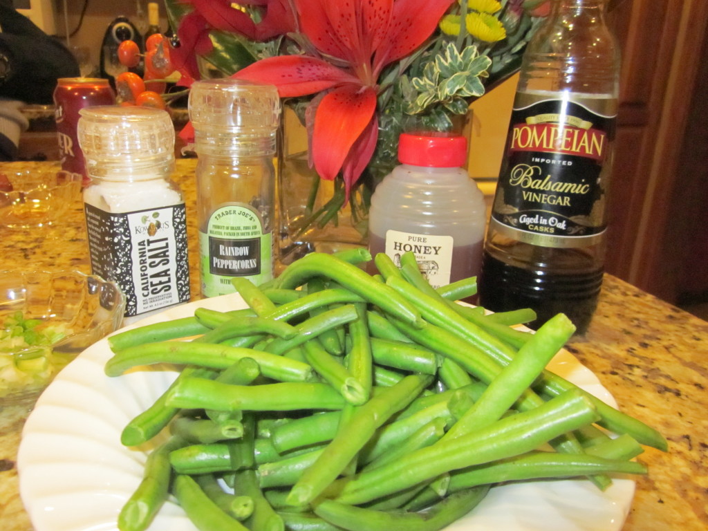 Previous Image Next Image 5 ingredient green beans Green Beans, olive, oil, onion, balsamic vinegar and honey