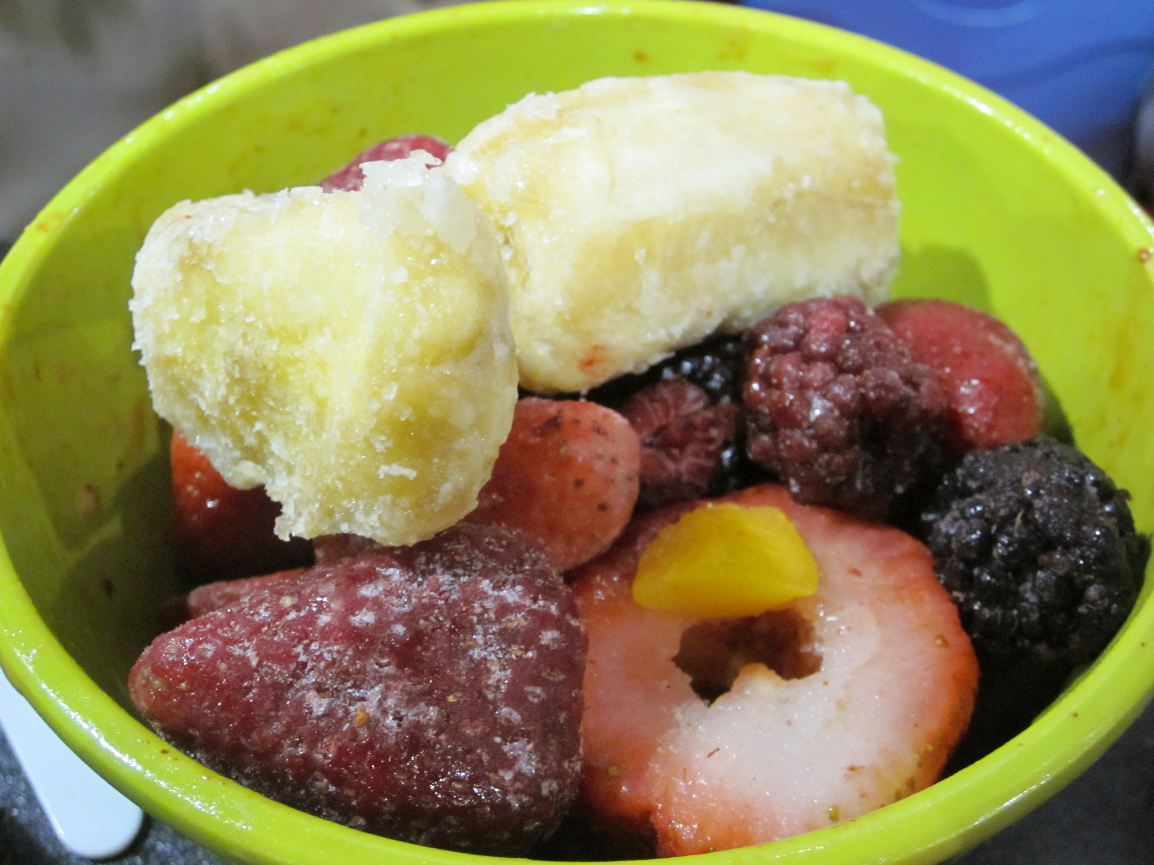 Previous Image Next Image picture 1 You need your favorite frozen fruit like berries or cherries, a few frozen bananas and a Yonanas machine and you can make a frozen fruit sorbet without any added sugar. Simple as that.