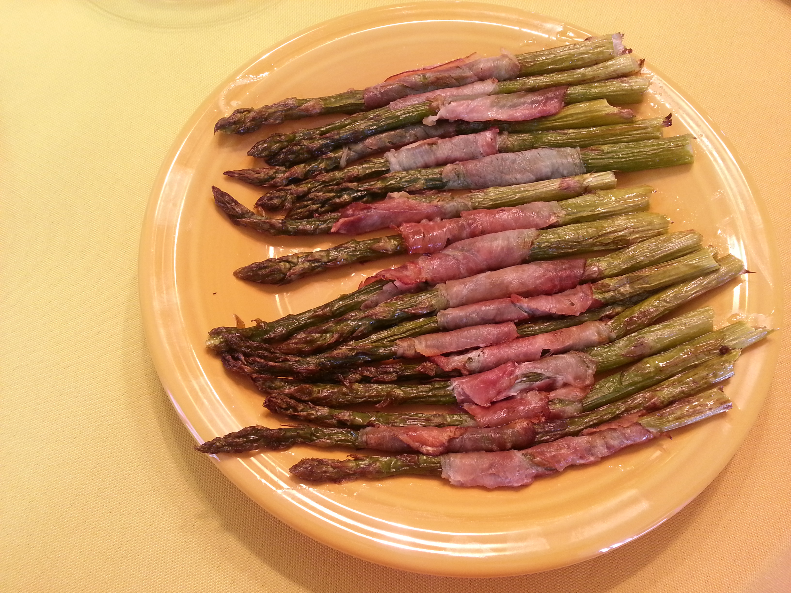 Want and easy, elegant and make ahead veggie dish? And, if you love bacon and want to eat more veggies this recipe is for you. The prosciutto gets crispy like bacon and the asparagus gets soft and tender. Best, it takes about five minutes to prepare. I made this for Easter and my company loved it. Even Gary! And he is not a big asparagus fan. I have found if I put bacon or prosciutto on any food he will eat it. Gotta love that!
