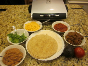 Guests can make their quesadillas in a skillet on the stove or a George Foreman Grill like we used here.