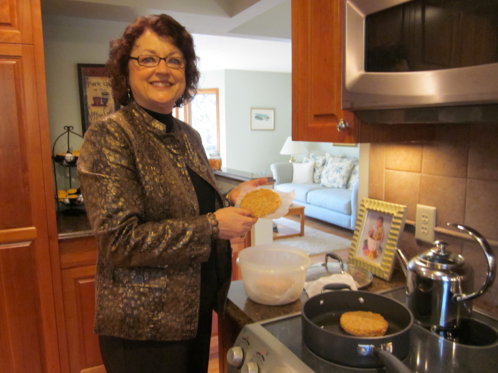 Previous Image Next Image Susan Zimmerman says What a surprise! Susan Zimmerman surprised me with cooking the Salmon Patties. She even bought a new patty maker. They were gorgeous. We ate with all our senses.