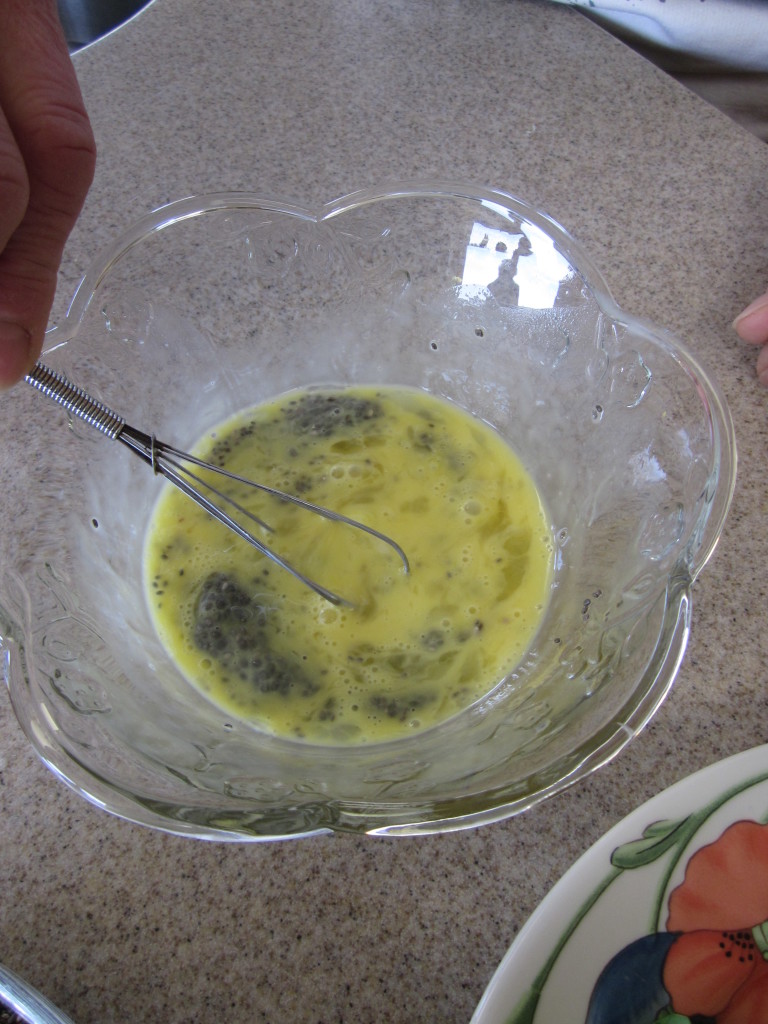 Previous Image Next Image Whisk the chia seeds into egg and soak for 15 minutes Whisk the chia seeds into egg and soak for 15 minutes